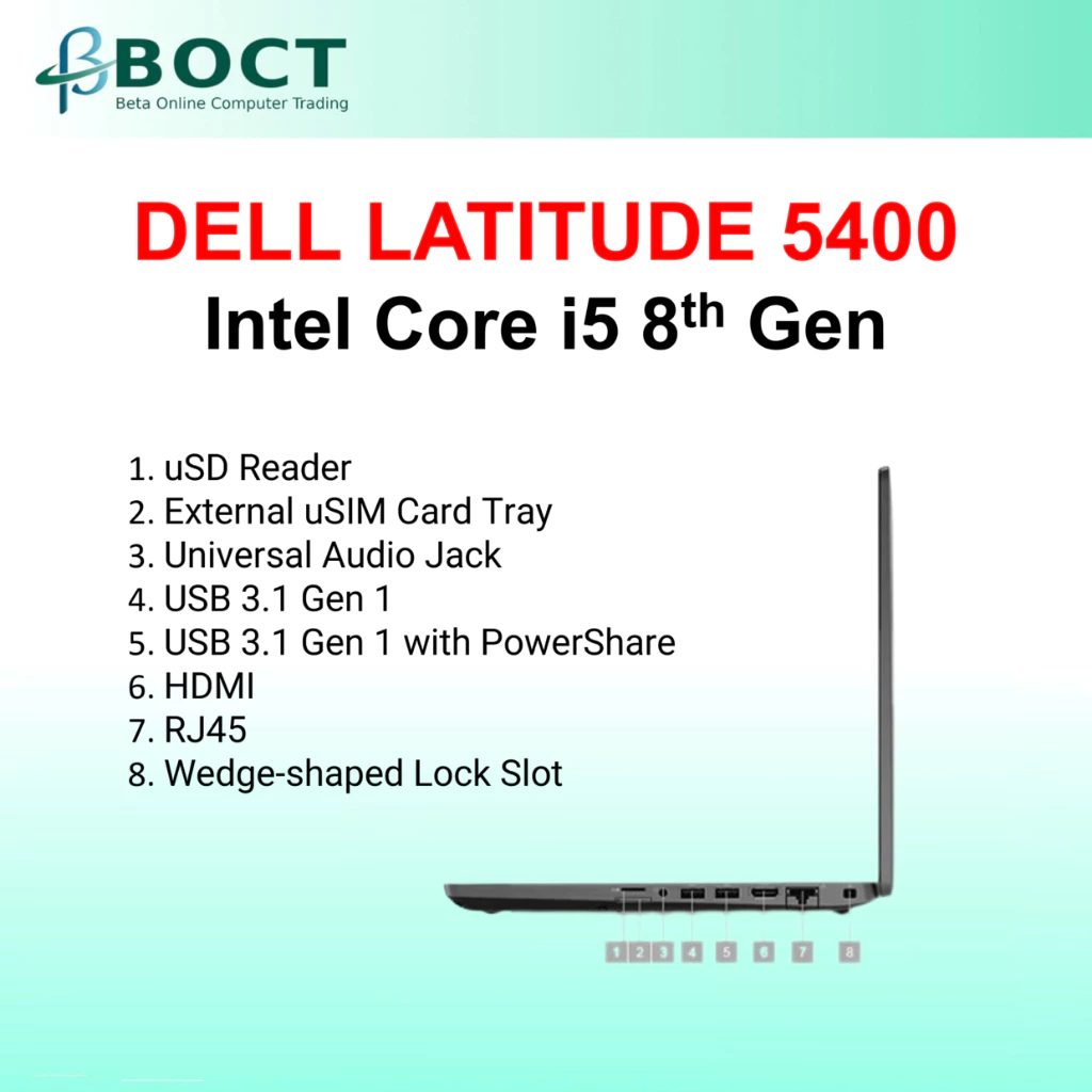 Refurbished Dell Latitude 5400 / Intel Core i5 8th Gen / 14″ FHD screen / Optional RAM / Optional NVMe or SSD / Webcam / HDMI / Keyboard Backlit / W10P