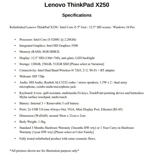 Refurbished Lenovo ThinkPad X250 / Intel Core i5 5th Gen / 12.5″ HD screen / Windows 10 Pro
